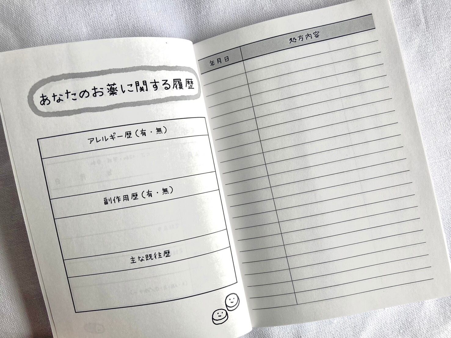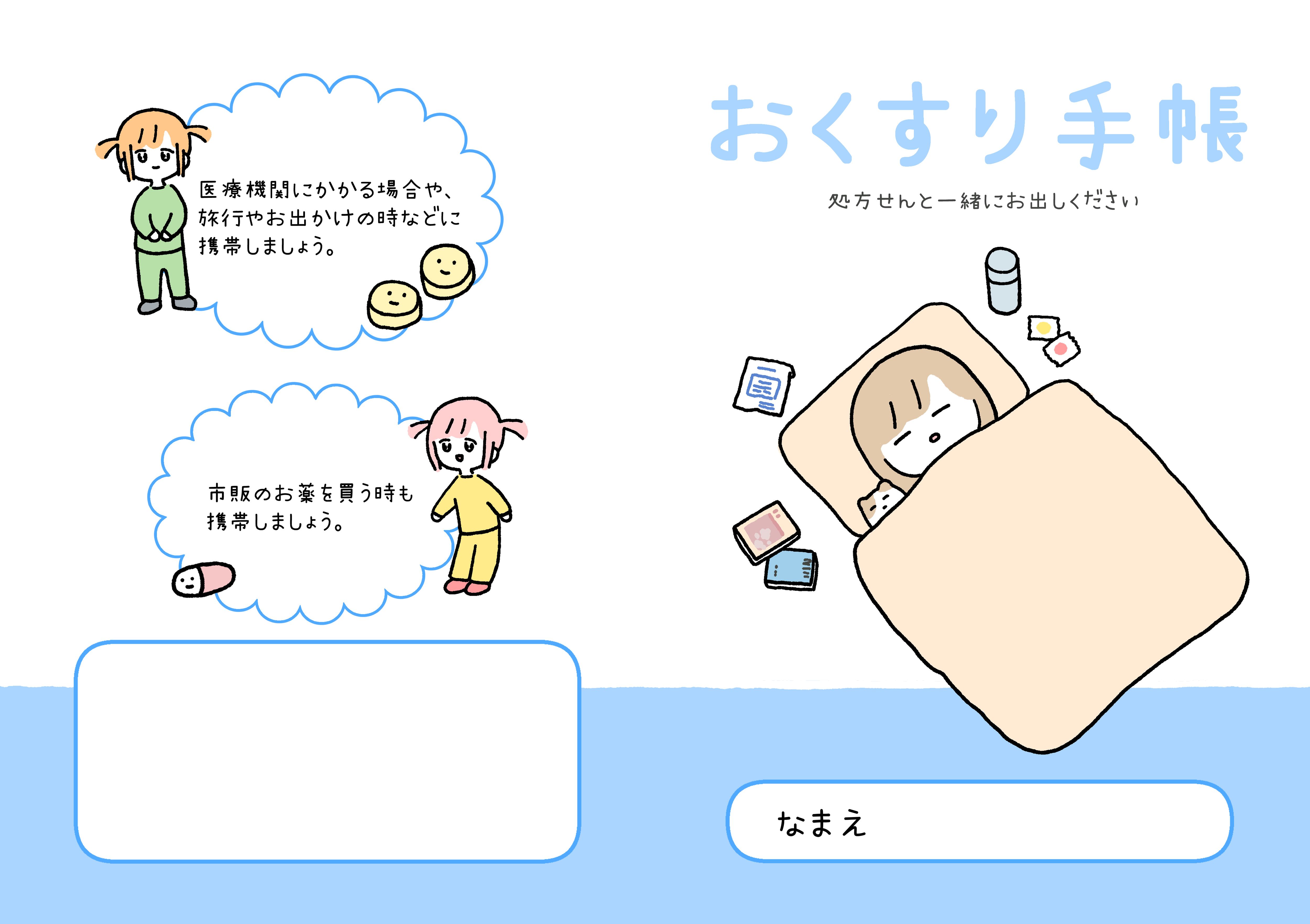 診察や処方の待ち時間に少しほっとできるようなデザインのお薬手帳がほしくて作りました。
